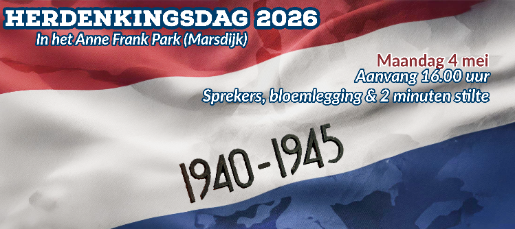 Op maandag 4 mei organiseren Activiteiten Marsdijk en Stichting het Anne Frank Park voor de 2e keer een herdenking in het Anne Frank Park. Tijdens de herdenking staan we stil bij de vele slachtoffers die zijn gevallen tijdens de Tweede Wereldoorlog en de oorlogen en conflicten daarna.